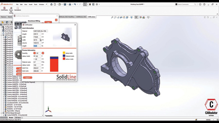 Solidline CAMculator optimizes costing to save time and labor. "Traditionally, costing is calculated using old stock, estimated values or trial programming," said a company spokesperson. "With CAMculator, data from the CAM model is utilized and cycle time can be calculated and used to ultimately program and calculate the cost of an entire component." Solidline CAMculator supports the automation and costing of parts for up to 5-axis simultaneous machining.