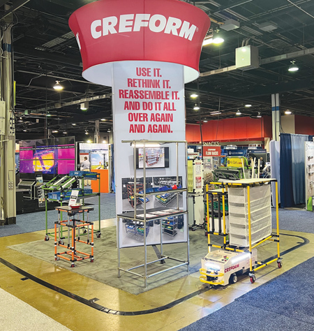 Creform will feature several products at MODEX 2024, booth B7650. Pictured is the newly designed Creform booth.