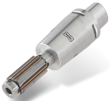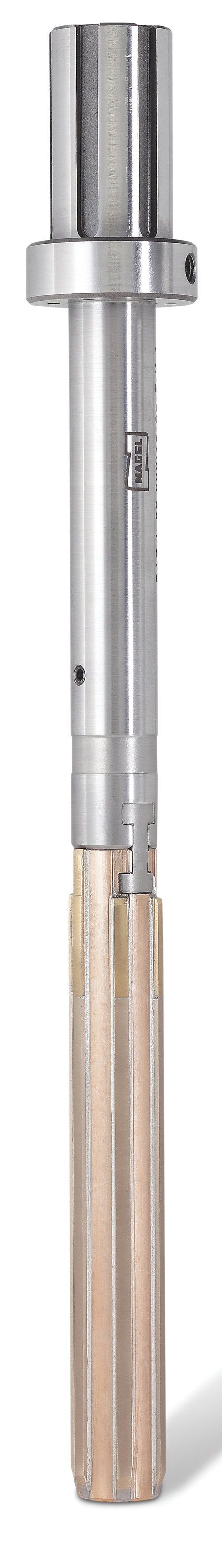 Typical applications are bores with longitudinal grooves where the cutting edges of a reamer would get caught. Further examples are valve seats and guides, e.g., in hydraulics. If required, Nagel can also supply designs for stub bores or multistage processes. Most mandrels include wear compensation by means of an expanding mandrel. The mechanism is actuated at the adapter of the spindle pick-up. A knurl and a scale allow µ-accurate adjustment.