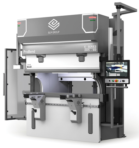 BLM GROUP has announced its automated ProBend press brake cell. This compact workcell, with an overall size of (LWH) 281" x 162" x 122", features the ProBend E-Series 205-60 and a 30 kg robot. It has the flexibility to process a wide variety of part sizes from 4" x 3" up to 24" x 32" and 33 lbs. with enhanced reliability and productivity. The E-Series 205-60 press brake has a bending force of 66 tons and a bending length of 81".