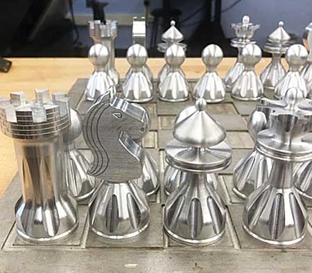 Seniors in the GLTS Advanced Manufacturing Program produced a full chess set and board with Mastercam CAD/CAM software.