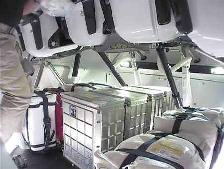 NASA stowage lockers onboard SpaceX's Dragon Endeavor en route to dock with the International Space Station. GLTS student signatures are written in the lower squares of the locker. Photo courtesy of NASA.