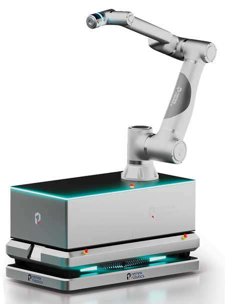 Rethink Reacher has launched the Rethink Ryder AMR line and the Rethink Riser MMR. Combining a Rethink Ryder AMR with a Rethink Reacher cobot and a portable battery box allows mobile manipulation to be performed at high levels of efficiency.