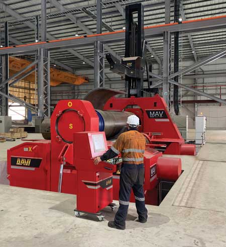 For heavy-duty applications, visitors can learn about Davi's MAV 30-80 3-roll variable axis plate rolling machine with tilting rolls for precise cone bending and flexibility. Davi's MAV series of plate roll machines are suitable for rolling plate thicknesses from 3" to 4" and greater and provide manufacturers the ability to roll tight radii with a focus on maximum precision.