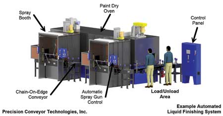 • Liquid painting-Supports robotic or manual spray application with consistent indexing and smooth part rotation for precise film builds.
