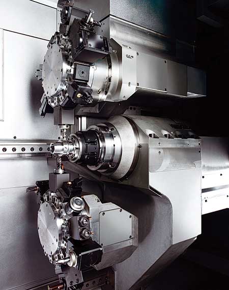 The C200 FANUC incorporates three VDI25 turrets that accommodate 14 tools each. The ability to apply all three turrets simultaneously allows for reduced cycle times. Operators can apply two Y axes to the main spindle or one Y-axis on the main and counter spindles to further optimize the production of complex parts.