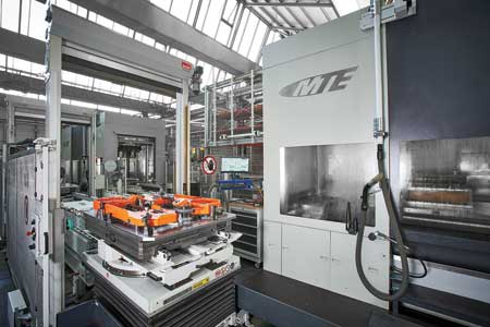 Qualified personnel can load pallets with the appropriate clamping devices at separate workstations. The system then transports the prepared workpiece carriers automatically into the buffer storage.