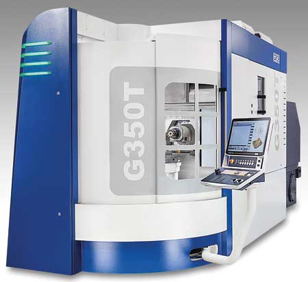 "The G350T features a unique arrangement of the three linear axes that minimizes the distance between the guides and the machining point (TCP), providing stability in part production," said a company spokesperson. "A tunnel concept permits the largest possible component-even in the case of extremely long tools-to be swiveled and machined within the work area without collision. The three linear and two rotary axes allow 5-sided machining, 5-axis simultaneous interpolation, as well as GROB TRAORI-turning for precise cutting control."