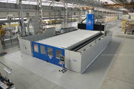 The system offers a broad and flexible working envelope to meet a wide range of production needs. Longitudinal (X) travel starts at 157" (4,000 mm) and is configurable up to 1,318" (33,500 mm), transversal (Y) travel starts at 118" (3,000 mm) and can be extended to 256" (6,500 mm) and vertical (Z) travel starts at 59" (1,500 mm) and reaches 118" (3,000 mm). This scalability makes it suited for machining large and complex parts, whether in single-piece manufacturing or in high-volume, fully automated workflows.