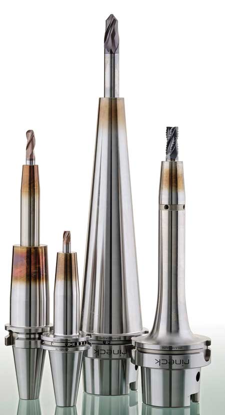 Rineck offers standard and custom shrink fit toolholders with various connections, including CAT, HSK, BT, SK, PSC and straight shank extensions. In addition, ER shrink fit collets are available. For added rigidity, flange or dual contact holders are available for CAT and BT tapers. A clamping range from 3 mm to 32 mm is possible for slim and standard styles. All tools are available in inch and metric sizes.