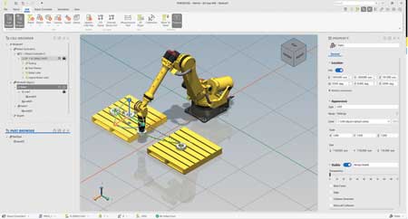 • Modernized user interface: Featuring a ribbon-style toolbar, floating and docking windows and improved graphics, ROBOGUIDE V10 makes navigation more intuitive and efficient. Using a new drag-and-drop tool, users can quickly locate and define robots.