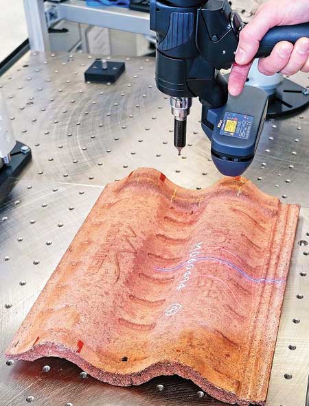 Few people outside the tile-making and building industry know that a good quality roof tile has to be manufactured to a tolerance as tight as plus or minus half a millimeter. It places a requirement on the research and development and quality control (QC) functions in that sector to measure prototype tiles and mass-produced tile samples to ensure they are accurate. Metrology staff also need to check the wear on molds used to make the product, as well as the condition of tungsten carbide wear parts and steel tooling in the production machinery. Sometimes it is necessary to reverse-engineer replacement components for older machines to avoid delays in production, or to produce a CAD model to update a legacy tile, or inspect a 3D-printed item to assist a design process.