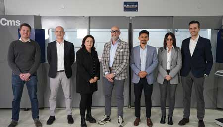 (l-r) Thomas Niefenecker, Roberto Milesi, Hufschmied Managing Director Christel Hufschmied, CMS S.p.A. CEO Matteo Radicioni, Patrick Pulendran, Mirella Locatelli and Stefano Locher