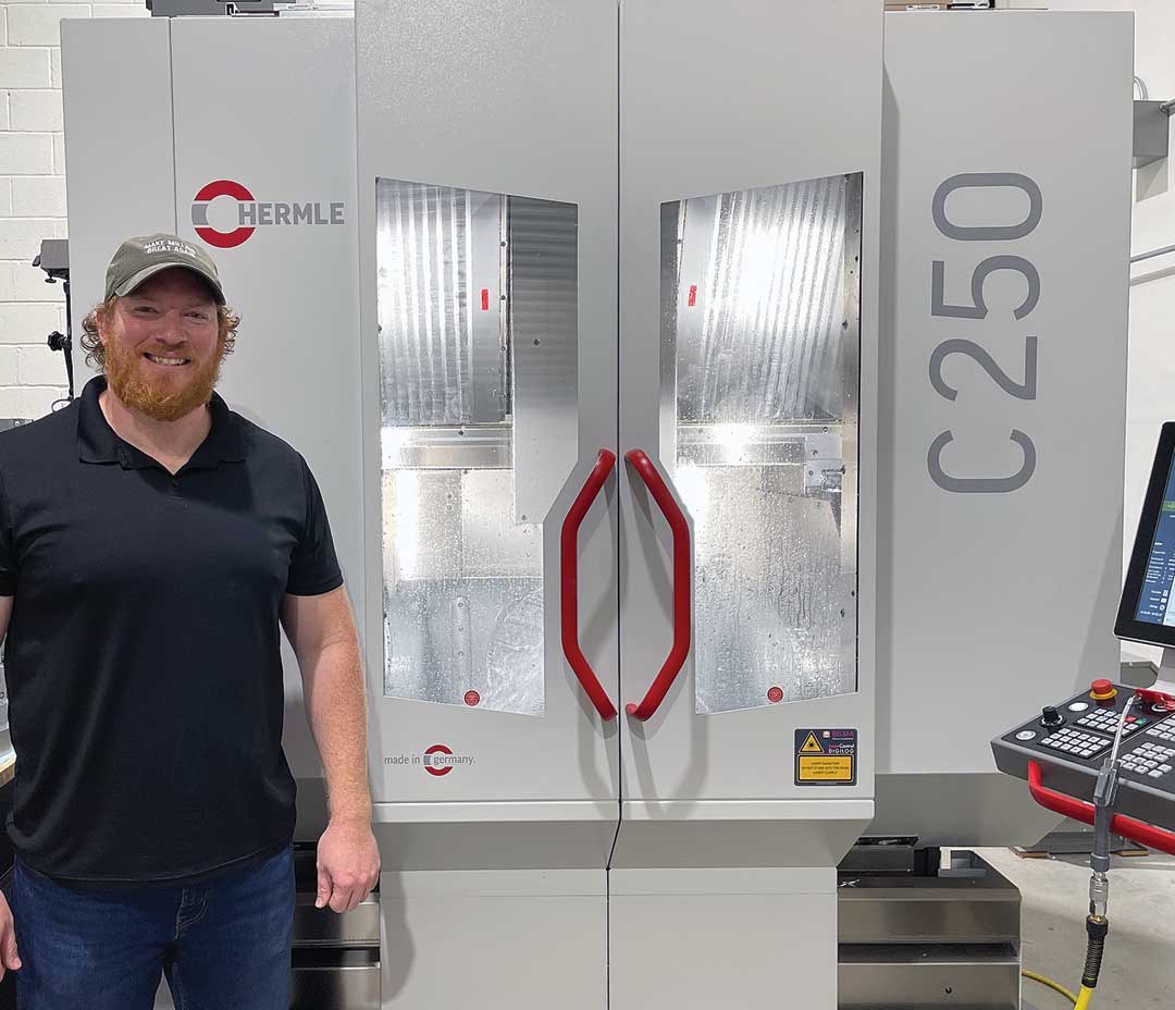 Justin Baucum, General Manager, with a Hermle C 250 in Isembard's first U.S. facility.