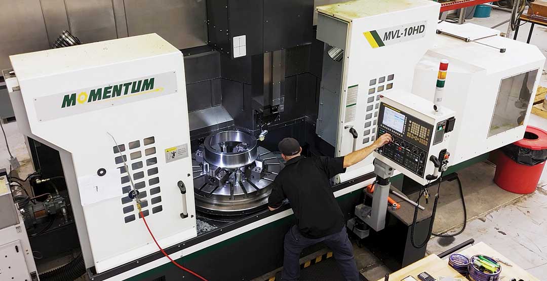 The Momentum MVL-10HD is a large-capacity VTL with a 49" swing-a perfect match for the work Highland had traditionally done on its older lathes. But the similarities end there. While the footprint and casting style retain the wraparound design known for providing optimal rigidity and dampening, the Momentum brings a level of automation and productivity the older machines could never offer.