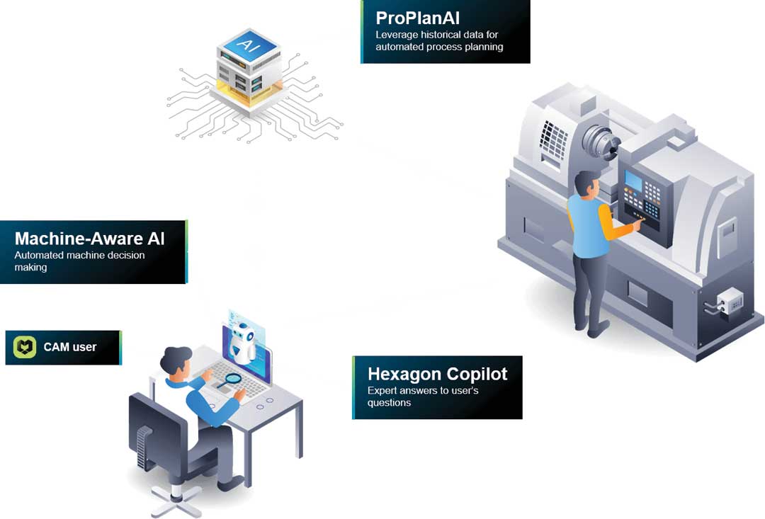 Firstly, Hexagon Copilot, an AI-driven virtual assistant, provides 24/7 support for CAM programmers of all skill levels. With natural language processing, it offers tailored responses, expert guidance and seamless integration into the software's interface.