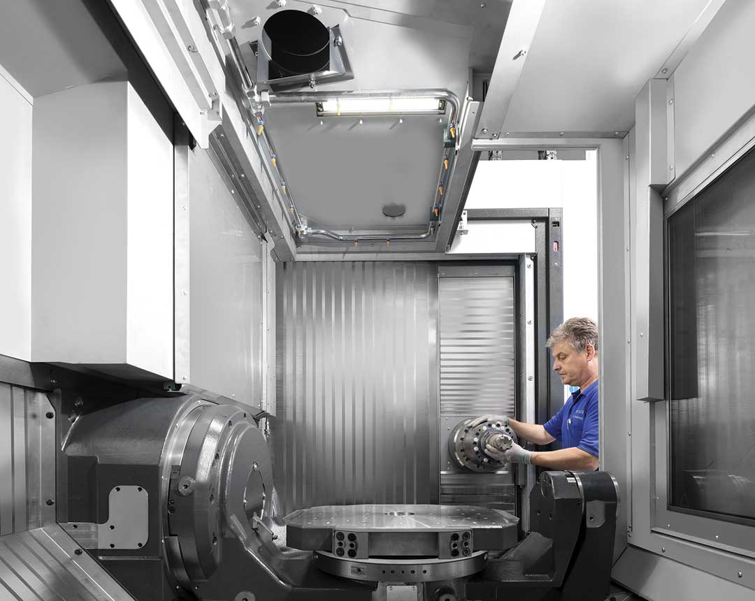 The MTe (Mill/Turn Enforced) comes standard with enforced Z and A drives for better, more accurate precision machining. Also, standard is a counter bearing and highly dynamic torque drives in the NC rotary swivel table, offering precision, repeatability, and heavier part support.