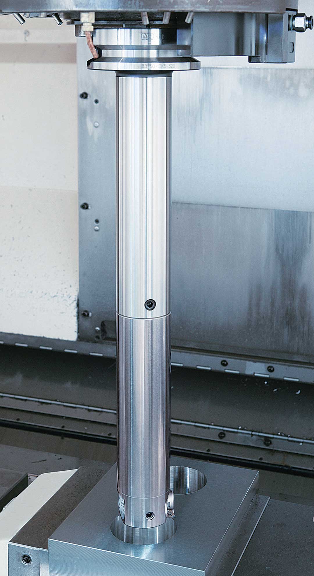 An integrated damping mechanism within the toolholder functions as a dynamic counter and friction damper, instantly absorbing vibrations and eliminating chatter. This results in higher machining accuracy, improved surface finishes, and increased metal removal rates for greater productivity at critical depths.
