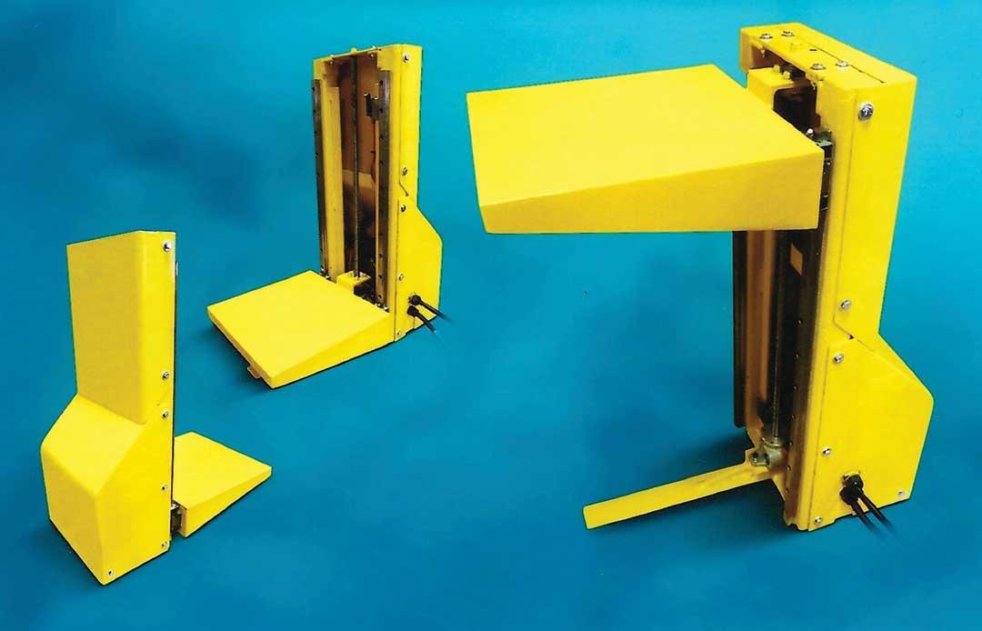 Typical power source is 120VAC single-phase, with heavier models available 230/460VAC 3- phase power or battery powered on mobile units. There is even an option for pneumatic compressed air powered systems, completely eliminating electrical service requirement and making the system ideal for hazardous area applications. A control pendant is included for up-down action, with available foot pedal, free-standing pedestal, or wireless radio control options. The lift controls can be automated with a PLC or integrated into other systems, and the lift can be equipped with encoder, stepper motor, or servo motor for complete and accurate positional feedback.