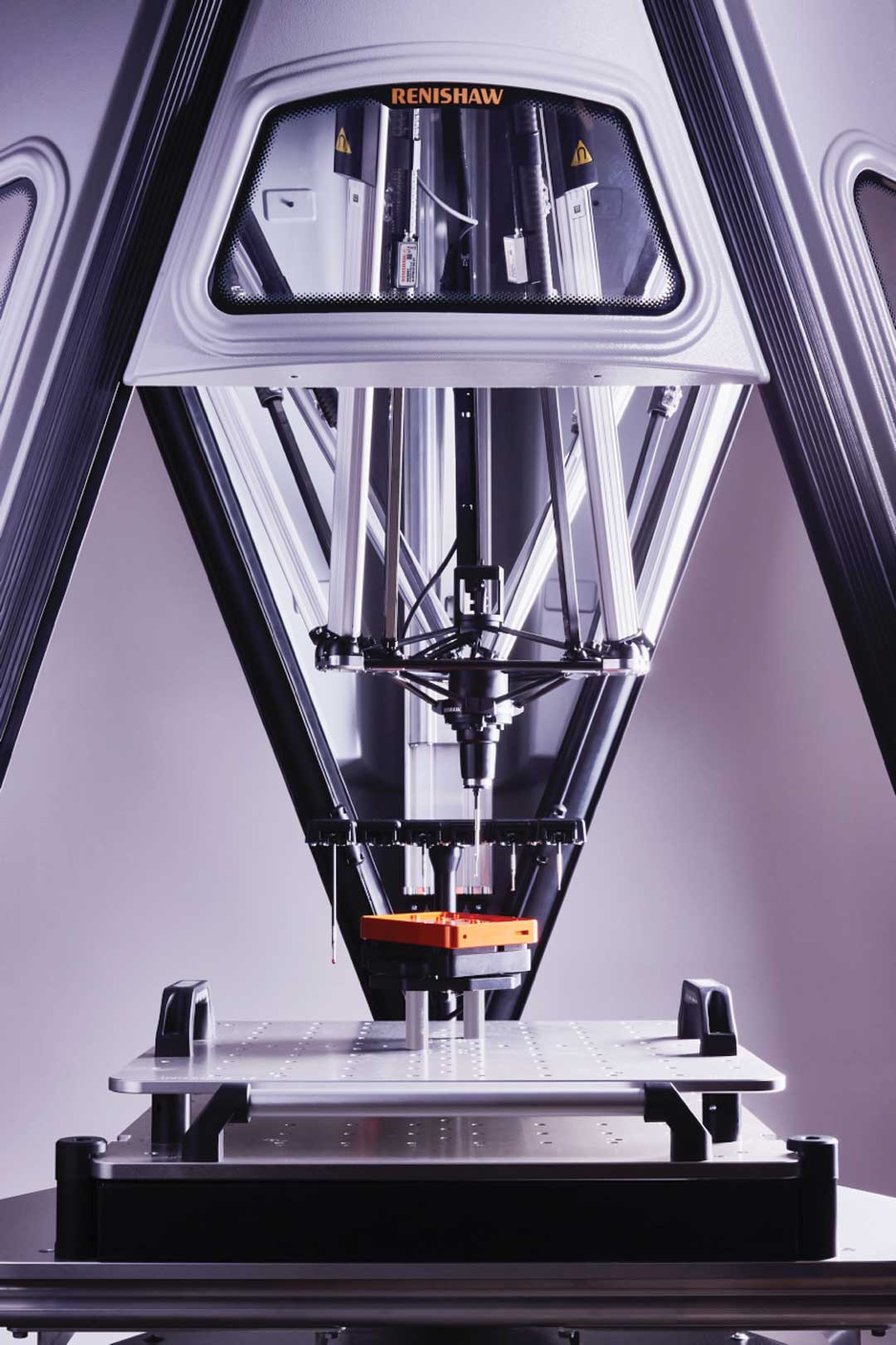 The Equator-X 500 gauge is a hexapod structure with independent drive and metrology frames. High-speed motion is achieved without compromising metrology due to design features such as carbon fiber metrology struts, linear motor drives, and the industry standard SP25M scanning probe.